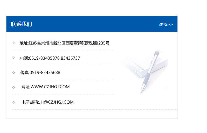 地址:常州市新北區友邦商務大廈1幢16、17層  電話:0519-85101652  傳真:0519-85112595  郵編:213022  網址:www_cz-jiayue_cn.gzmingfei.com  郵箱:xiajifengaa@163.com